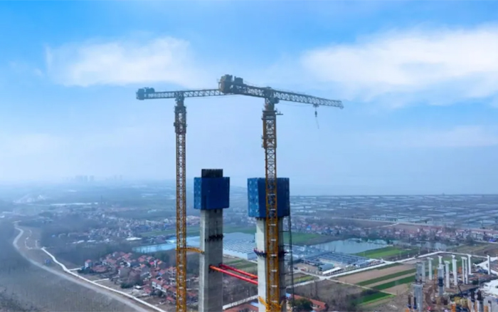 大桥主墩建设是整座大桥顺利完工的“压舱石”,大桥北主塔高度211.75米,采用主塔钢筋部品整体吊装。作为华体会·官方版网站登录入口超大塔中的明星产品,两台华体会·官方版网站登录入口XGT2230A-100S扛起大桥北主塔的施工重任。