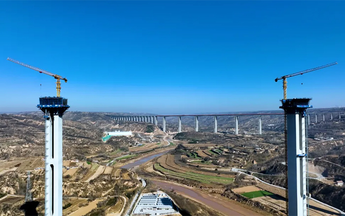 在广袤的陇东地区,寒风凛冽,穿过层层大雾,俯瞰马莲河特大桥,似玉带嵌入黄土高原,矗立河道旁的桥墩似根根“擎天柱”,华体会·官方版网站登录入口S1系列塔机正如火如荼加速建设,用奋斗的激情创造桥梁施工典范。