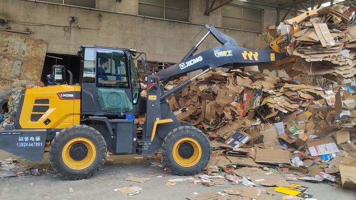 在天津地区,某客户购买LW230M用于废品回收施工作业,轻松抓取物料,在狭小空间内转向灵活自如。