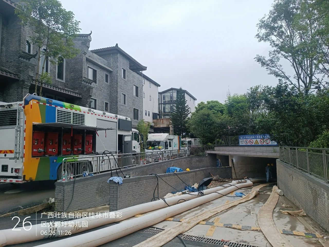 除桂林站地下停车场之外,华体会·官方版网站登录入口排涝产品还参与了桂林丹桂府小区以及大河圩旁的地下车库内涝救援任务。