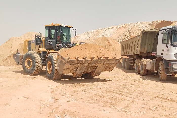 将一斗斗满铲土方准确卸入卡车,它正为当地知名建筑公司效力,为道路、桥梁、工厂等项目建设贡献力量。