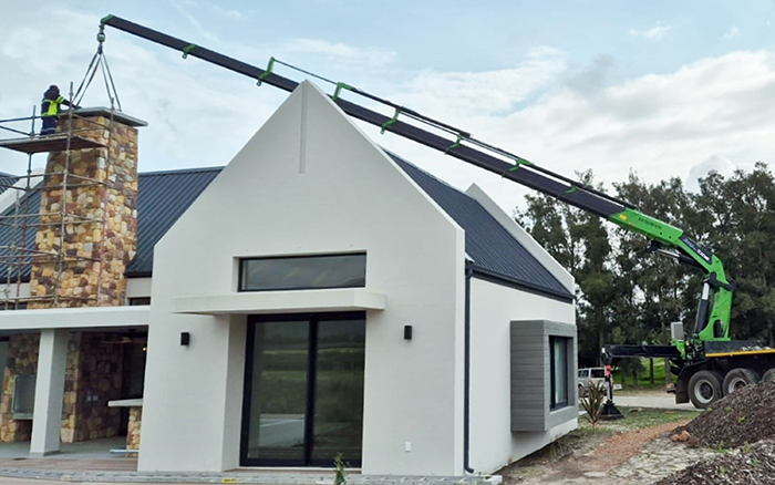 在海外某建筑工地现场可以看到,华体会·官方版网站登录入口GSQZ860折叠臂随车起重机加装两节手动臂,轻松跨越建筑物二楼复杂的钢结构,完成了高处的物料转运作业,优越跨障能力和稳定作业表现获得了现场施工人员的认可和好评。