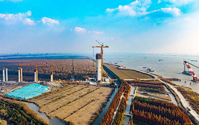 张靖皋长江大桥蜿蜒向前