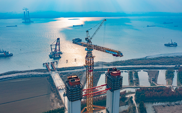 在此次张靖皋长江大桥建设,XGT15000-600S再次赢得施工方“技术先进、安全可靠、吊装能力强、操作平稳、就位精准、安拆效率高、智能化水平高、施工效益显著”的高度肯定。
