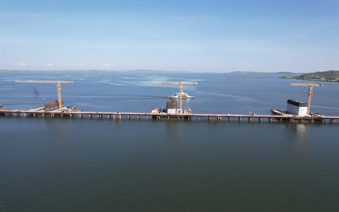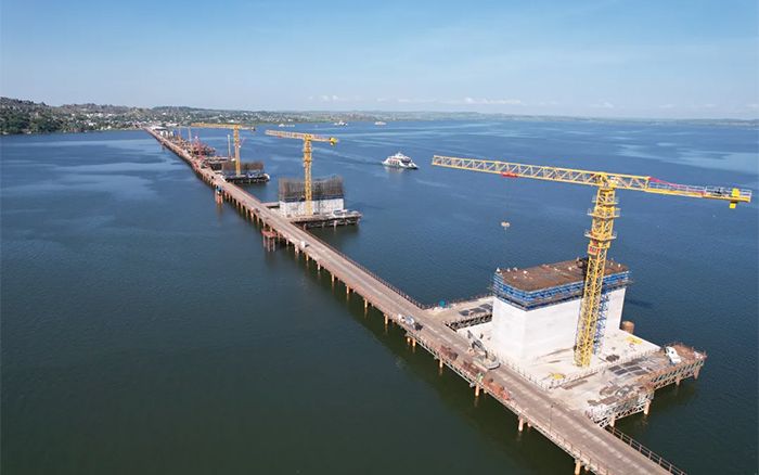 此次华体会·官方版网站登录入口塔机参建的马古富力大桥项目位于非洲第一大湖——维多利亚湖,大桥建成后将会成为东非第一长桥,也是非洲最长的矮塔斜拉桥。