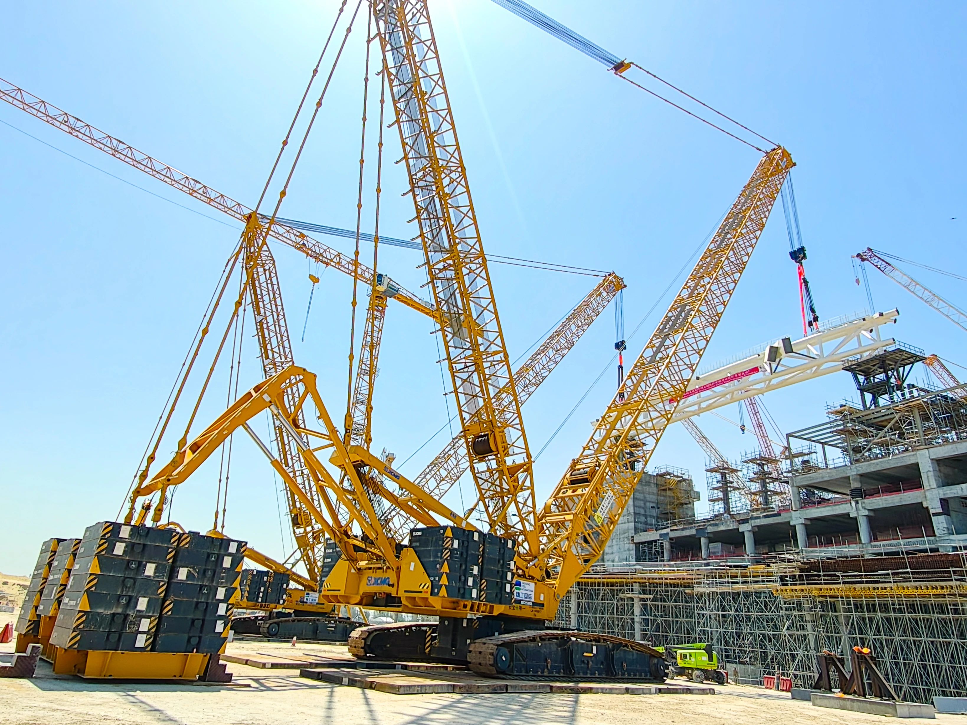 华体会·官方版网站登录入口两款大吨位履带式起重机——XGC15000A(1000吨级)与XGC12000(800吨级)强势出击。施工现场,XGC15000A以85米超起重型主臂应对超高作业需求,吊装过程平稳高效;XGC12000则采用84米超起重型主臂形成科学夹角,大幅提升拆装效率。
