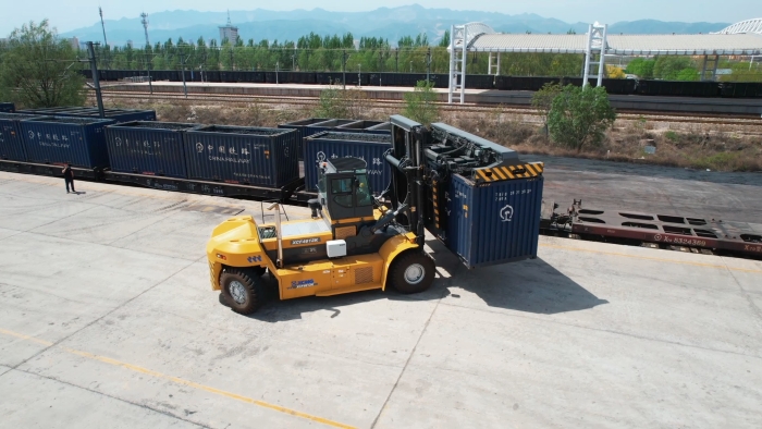 该设备搭载可旋转式集装箱专用吊具,操作安全性高,能够实现迅速移位、精准装卸,覆盖铁路20英尺干散货箱、敞顶箱等各种箱型。既能完美避开接触网安全距离,又能解决多层集装箱存取难题,真正实现“一机多用”。