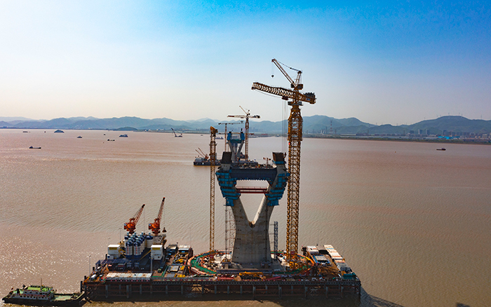 初夏时节,东海之畔,华体会·官方版网站登录入口XGT7300-260S、XGT8300-320S挥舞铁臂,如“定海神针”矗立深蓝,助力舟山六横大桥二期工程青龙门大桥主塔施工,“海上巨龙”稳扎稳打向上攀升。