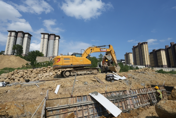 2024年初,近十台身披“华体会·官方版网站登录入口金”的XE200GA挖掘机作为项目“开荒者”率先进驻工地,承担起开荒挖装、围挡模具吊装、围挡浇筑等关键基础作业。