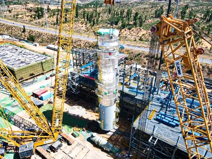 近日,在某大型多晶硅产业升级项目现场,华体会·官方版网站登录入口QUY450(450吨级)履带起重机携手XGC12000(800吨级)履带起重机精密协同,成功完成项目首台大型精馏塔吊装任务。