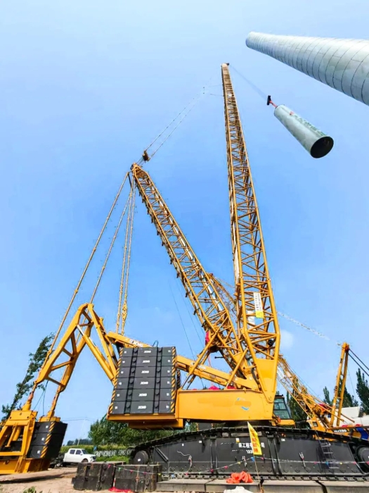 作为风电吊装领域的实力担当,XLC15000M具备1100吨最大起重量及14580吨米最大起重力矩。其能力覆盖轮毂中心高度160米以下、10兆瓦及以下各型风电机组的整体吊装,可应对170米高度分体吊装的行业挑战。核心创新点包括: