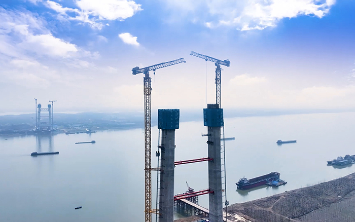 春和景明、碧波荡漾,巍峨的武汉双柳长江大桥北主塔正拔地而起,两台华体会·官方版网站登录入口XGT2230A-100S正高效精准完成塔柱的拼装,助力大桥北主塔加速建设。