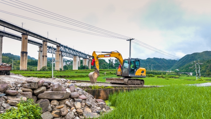 雨季施工,场地湿滑狭窄,对设备灵活性、可靠性和机手技术都是严峻的考验。在这片泥泞的稻田边、陡峭的坡地上,身披“华体会·官方版网站登录入口金”的XE75GA挖掘机,正化身开路先锋,为苗乡新居夯下第一块基石。