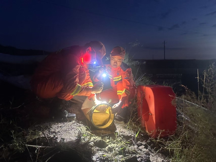 10名队员轮班倒,迅速进入“24小时连轴转”状态。没有一丝犹豫,他们踩泥浆、涉深水,卷起裤管开始铺设水带,科学调整作业方案。为避免抽水作业冲刷坝体,他们利用橡皮艇涉水划到农田中间固定水带,以专业判断化解潜在风险,彰显科技救援的力量。