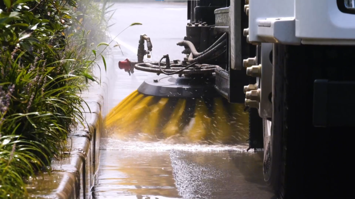 人行道与绿化带边缘:通过侧喷杆与手持喷枪的组合操作,洗扫车可精准清理路缘石立面、绿化带缝隙中的积尘,实现“无死角”保洁。
