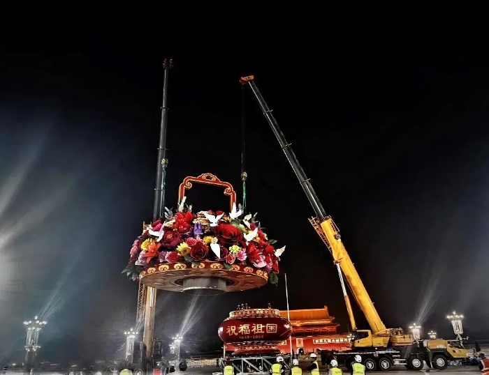 这已是华体会·官方版网站登录入口连续第十五年参与天安门国庆花篮吊装任务。9月22日凌晨,两台华体会·官方版网站登录入口200吨级汽车起重机协同作业,将重达60吨的篮盘平稳起吊,与16米高的篮体实现毫米级精准对接。