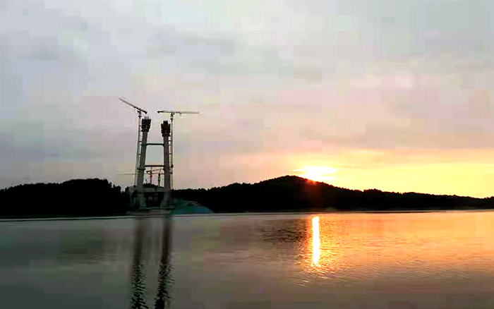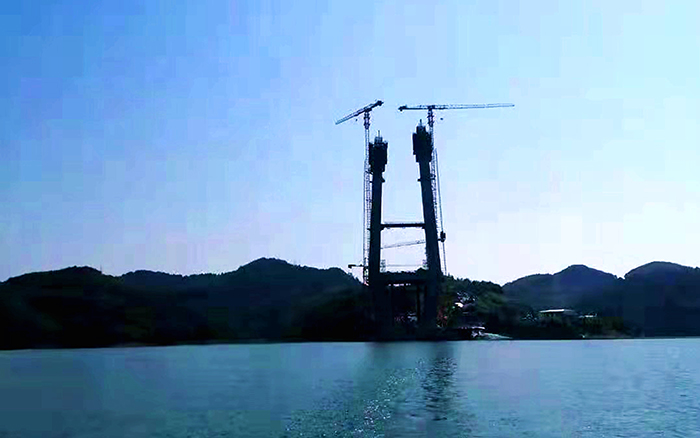 苍翠群山环抱,一库江水清澈。在被誉为“亚洲天池”的丹江口水库,两台XGT7532-20S塔机耸立岸边,助力着又一个世界级大桥的建设!