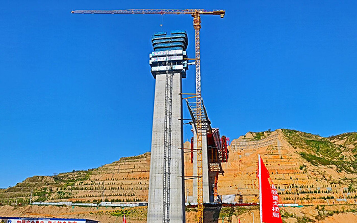 临猗黄河大桥主桥最高墩是钢箱梁连续顶推施工节点的控制性桥墩,施工难度大、风险高、工期要求紧。华体会·官方版网站登录入口XGT6015-8S1塔机高效运转,游刃有余的应对紧张、繁重的吊装任务,为项目建设保驾护航。