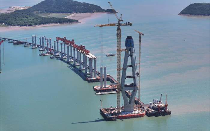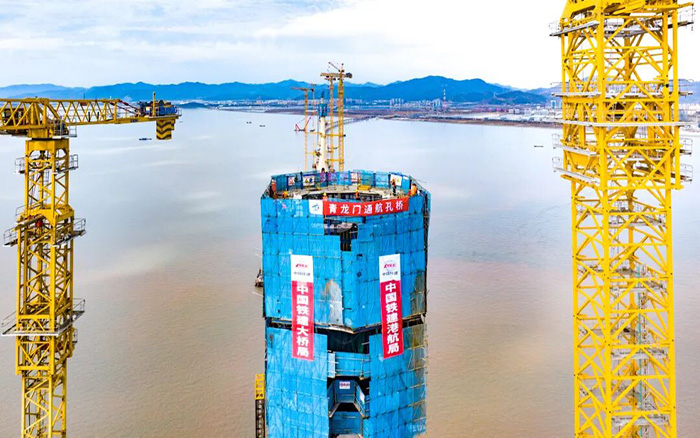 在青龙门大桥建设中,主塔毫米级精准控制与海上超高结构吊装成为关键难题。