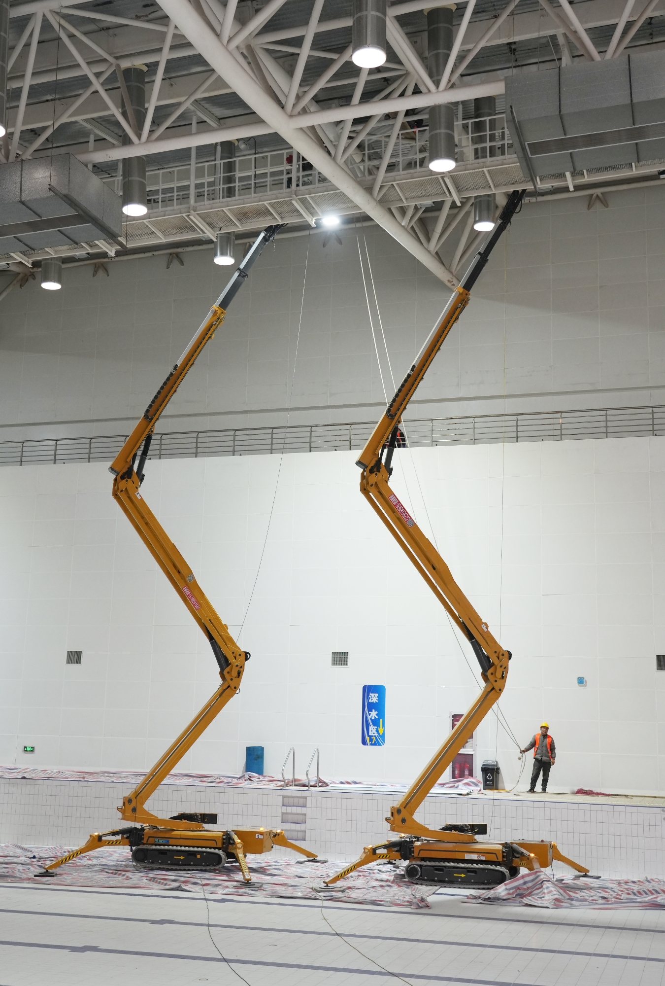 近日,3台华体会·官方版网站登录入口XGA26X-Li蜘蛛曲臂高空作业平台在徐州奥体游泳馆有序展开施工,该项目主要涉及屋顶瓦片更换、除锈翻新等作业,施工面积约3200㎡,计划工期为一个月。